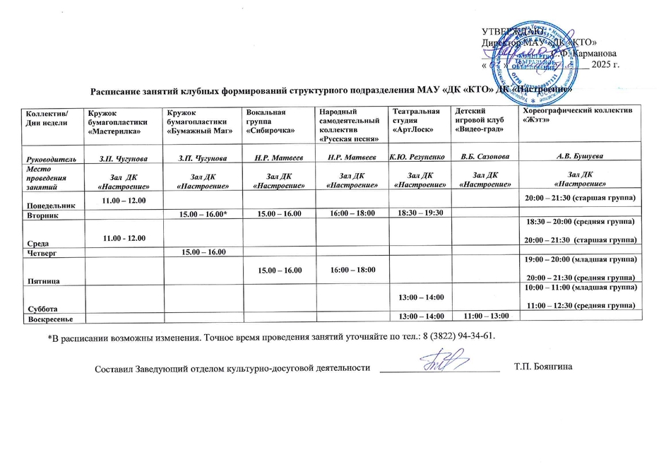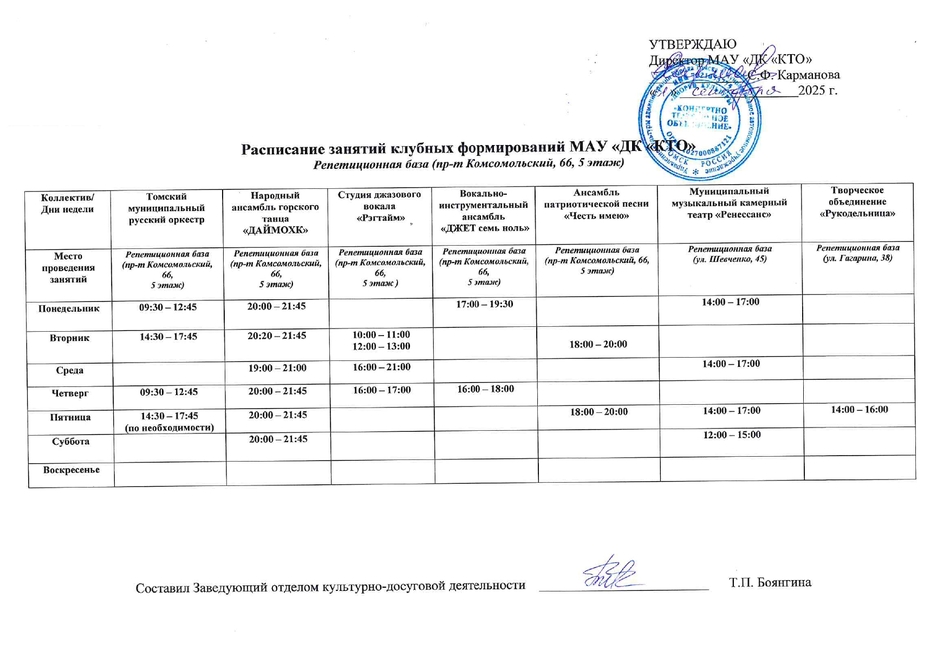 РАСПИСАНИЕ ЗАНЯТИЙ