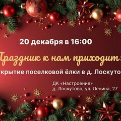 Мы рады пригласить вас на открытие новогодней уличной ёлки «Праздник к нам приходит!», которое состоится 20 декабря в 16:00 на площади ДК «Настроение»!