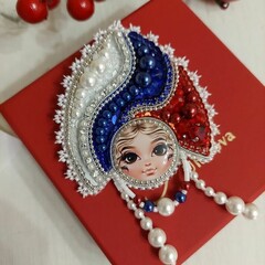 Создайте патриотический аксессуар своими руками брошь «Русская красавица», сочетающий в себе традиционную русскую эстетику и патриотический дух!