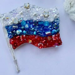 Брошь в цветах триколора, созданная с любовью к России, получилась уникальной и неповторимой!
